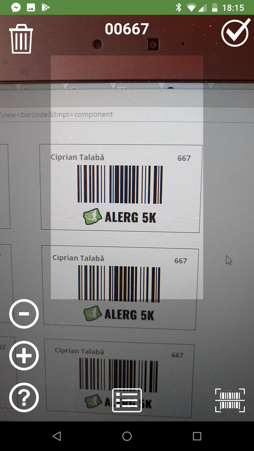 Scanarea codurilor de bare folosind aplicația Alerg5K Reader